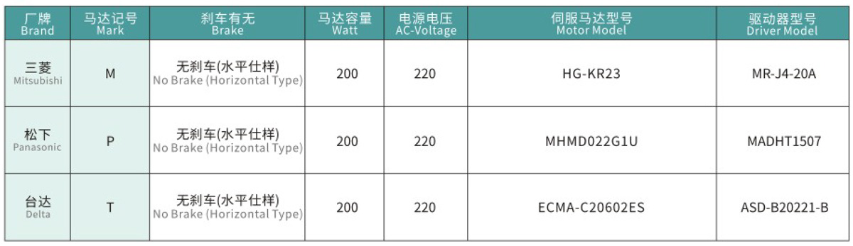 搭配伺服马达一览表
